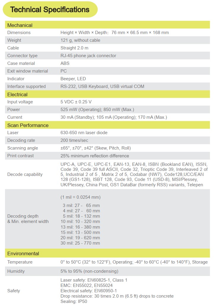 - Độ phân giải giải mã tối đa ở 3mil hoặc 5mil.