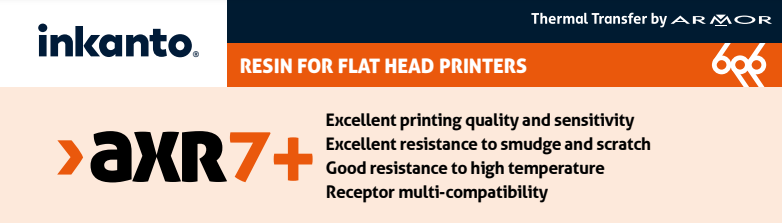 AXR®7 + là ruy băng nhựa tiêu chuẩn của dòng sản phẩm inkanto. Tính linh hoạt cao của nó (nó cũng in trên giấy tráng), hiệu suất của nó (độ sắc nét, tốc độ in) và khả năng mở rộng các lĩnh vực ứng dụng thông thường của ruy băng nhựa đã làm cho AXR®7 + trở thành tài liệu tham khảo trên toàn thế giới về dòng sản phẩm này.